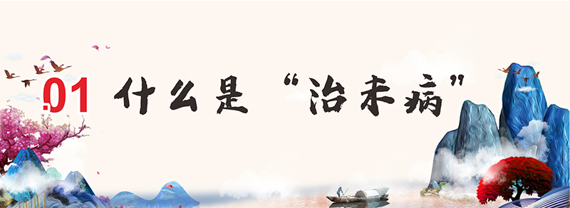 “治未病” 一词,首见成书于秦汉时期的《黄帝内经》:“圣人不治已病治未病,不治已乱治未乱,此之谓也。夫病已成而后药之,乱已成而后治之,譬犹渴而穿井,斗而铸锥,不亦晚乎!”它的意思是,高明的医生,不仅要知晓治已病之术,而且要通晓治未病之法,如同治国不仅要治既成动乱,更要在未乱的时候加强治理。如果已经病了而后用药,已经动乱了才来治理,就好比口渴时才想到挖井取水,打仗时才想到制造武器,不是已经晚了吗?