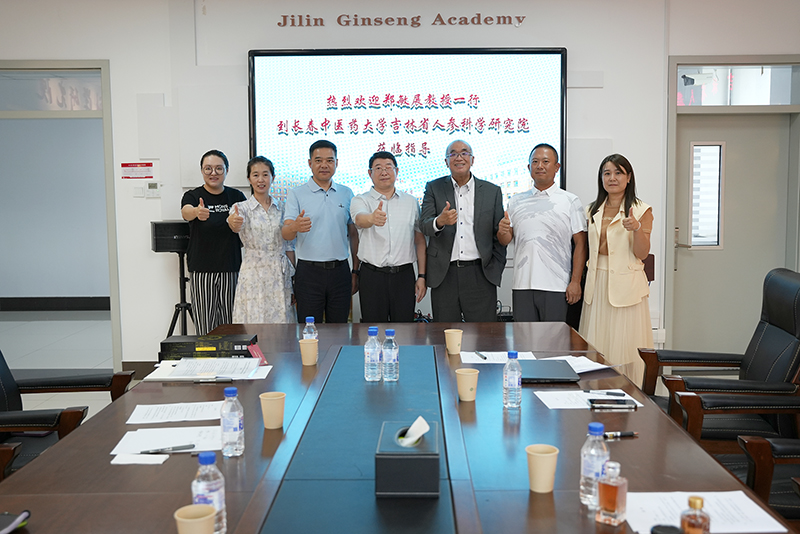 7月29日,郑敏展教授到访长春中医药大学吉林省人参科学研究院,通过参观校史展览、人参展馆,与院校领导及专家互动交流,进一步了解吉林省道地药材。长春中医药大学介绍本院通过网络药理学、药物基因测序等相关技术,在中药研发及技术革新等方面取得的科研成果。双方在中草药致癌物质研究,量效加权网络药理学等相关研究进行多方位探讨。